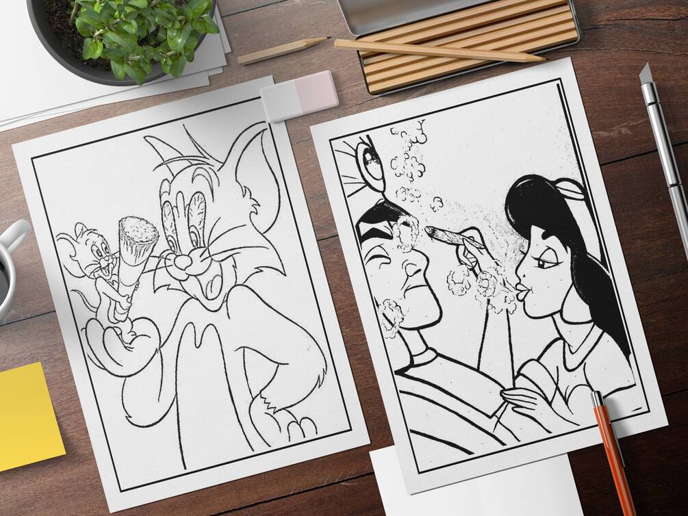 You'll get 40 coloring pages of 90s cartoon stoner
